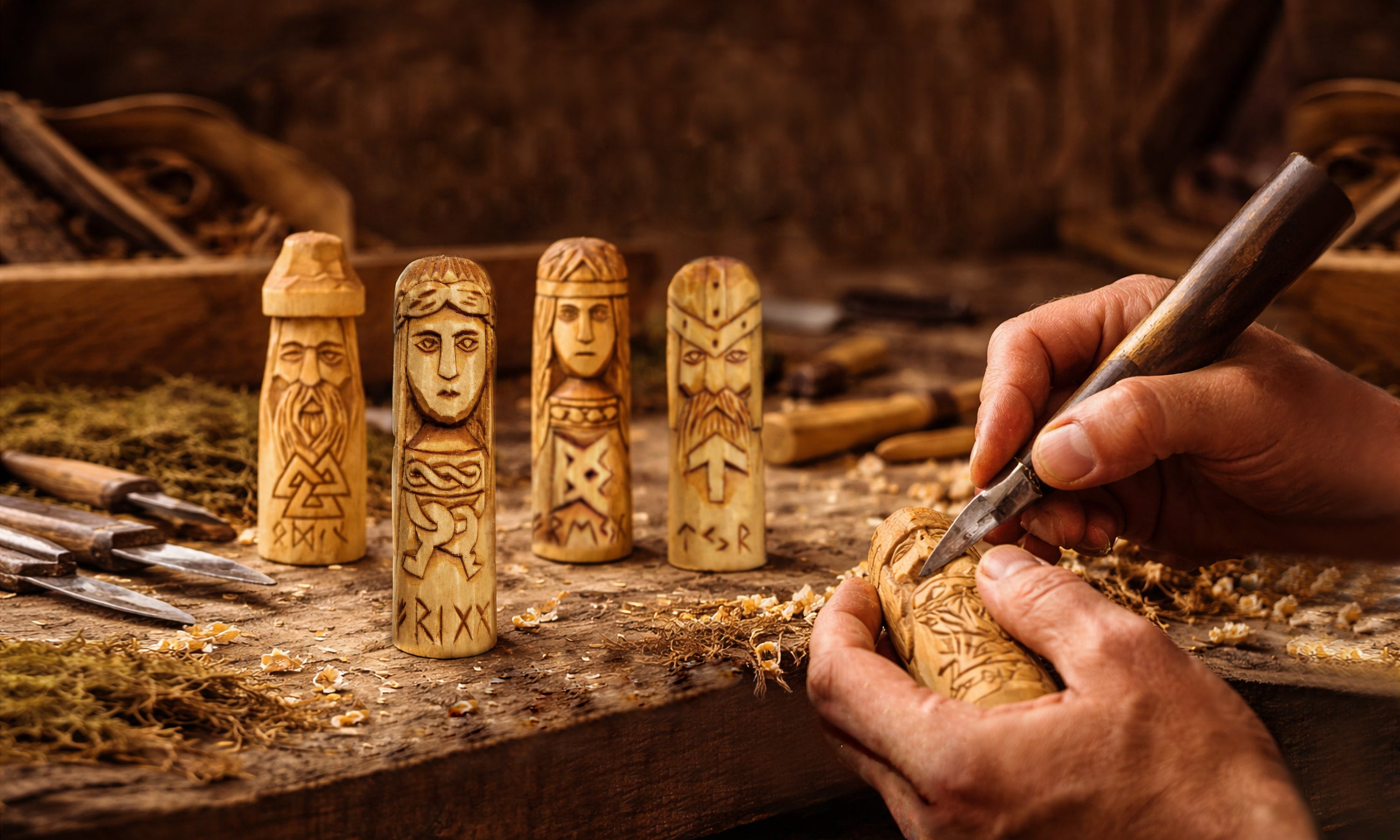 Small Wooden Altar of Norse Gods Set | Hand‑Carved Viking Statues | Ancient Gods