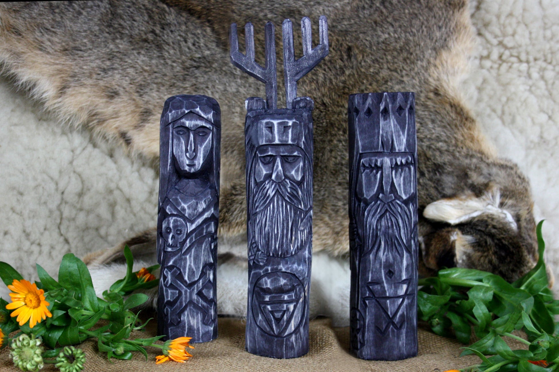 For sale is a set of the three most powerful dark Slavic gods Chernobog, Morana and Veles.